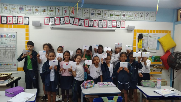 O projeto promoveu a troca de cartas entre os estudantes da Arthur Guimarães e a Escola Estadual Santos Anjos, também em Belo Horizonte, incentivando a escrita em situações reais de comunicação. Cada aluno(a) pôde se apresentar, falar sobre sua família, gostos, brincadeiras, além de enviar ilustrações e pequenos trabalhos anexos às cartas. A culminância do projeto contou ainda com a visita da escola parceira, tornando a troca de experiências ainda mais rica e próxima.