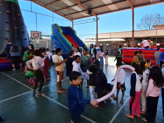A intenção era garantir que as crianças pudessem continuar se desenvolvendo, mesmo fora da sala de aula. Para isso, a escola preparou uma série de oficinas super legais, como pintura facial, brinquedos infláveis, taekwondo, karaokê e aulas de dança. Teve também atividades de informática, desenho e até bingo!