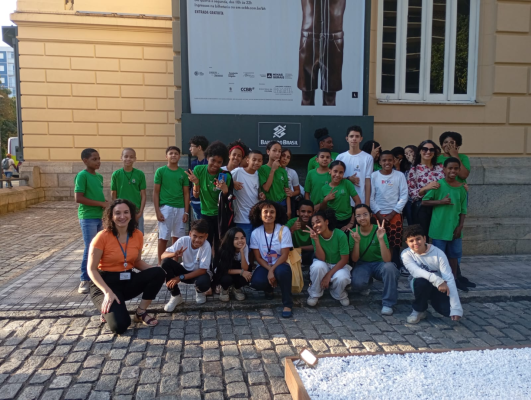 Em diálogo com o presente, os alunos também visitaram o Centro Cultural Banco do Brasil (CCBB), onde conheceram a exposição “Flávio Cerqueira: Um Escultor de Significados”. O passeio levou à reflexão sobre identidade, raça, classe e pertencimento. “O CCBB é um espaço que, por muito tempo, foi frequentado apenas por uma parcela elitizada da sociedade. Hoje, é aberto a todos, mas ainda pode despertar o sentimento de não pertencimento. Essa reflexão foi essencial para nossos estudantes”, destaca a professora Isabella M. G. Ferreira, de Língua Portuguesa, organizadora do projeto.