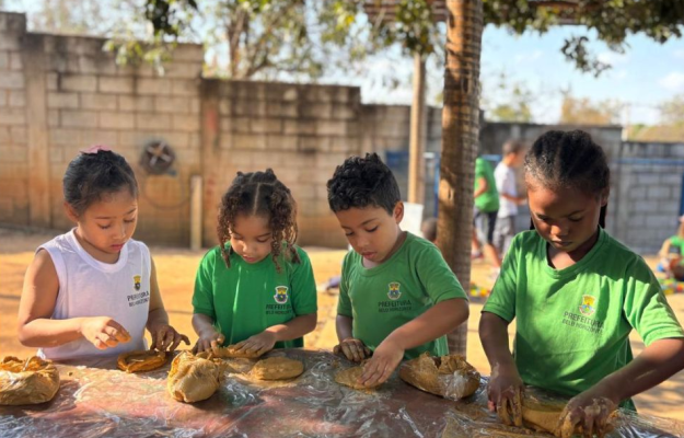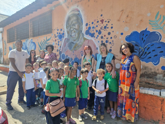 Na EMEI Jardim dos Comerciários, na Regional Venda Nova, o projeto A Florzinha no Coração do Quilombo tem promovido o conhecimento e o respeito às relações étnico-raciais, valorizando a cultura e a vivência quilombola a partir da escuta ativa das crianças.