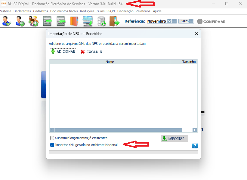 Data: Assunto: Disponibilizado o Build 154 do programa da DES permitindo a importação da NFS-e Nacional para os serviços tomados