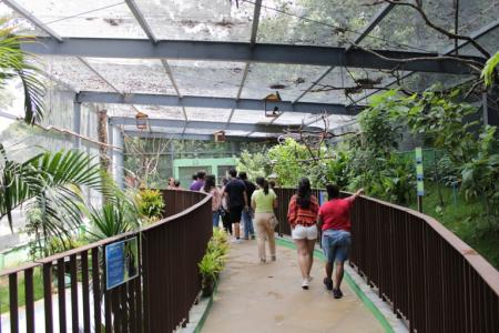 A visita guiada ao Recinto de Imersão de Aves é realizada em dias específicos. Quando em data próxima, consta na Programação de Eventos da Zoobotânica.