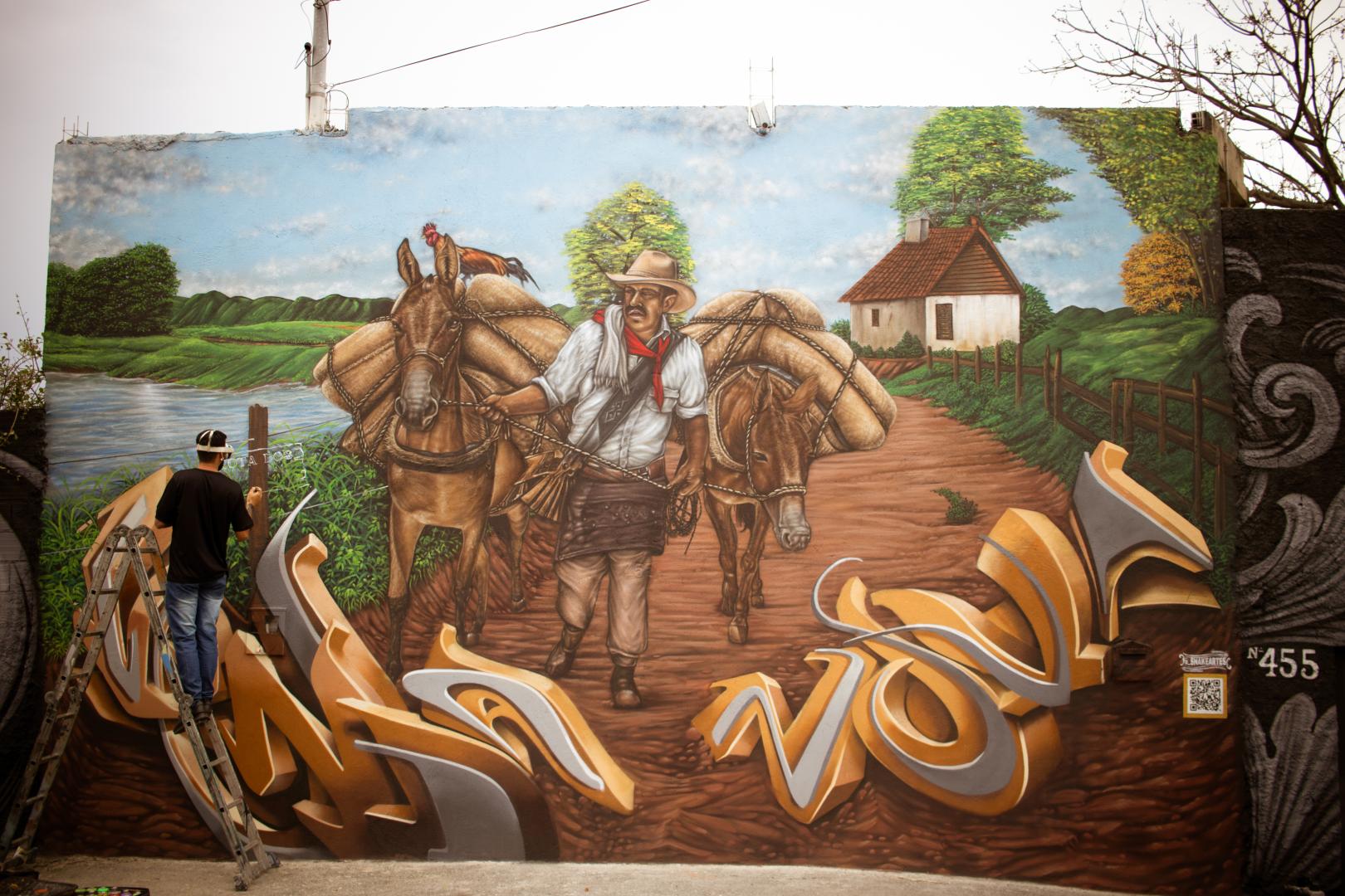 O projeto Colorindo Venda Nova foi finalizado com o quinto mural pintado na região. Desta vez, o muro do imóvel nº 455 da da Rua Madre Tereza, no Bairro Jardim Europa, passou a estampar a imagem de um tropeiro, em homenagem a quem transportava gado e mercadorias nos séculos XVIII e XIX.