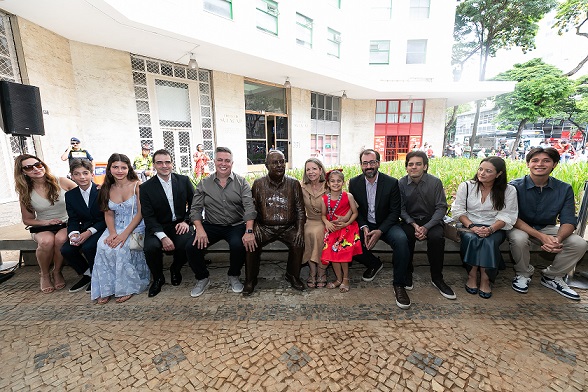 A obra é assinada pelo escultor Leo Santana, responsável por alguns dos mais conhecidos monumentos públicos de Minas Gerais e do Brasil, como a escultura “Drummond no Calçadão”, em Copacabana. Em Belo Horizonte, o artista criou obras como Pedro Nava e Carlos Drummond (Praça do Encontro), Encontro Marcado (Biblioteca Pública), Henriqueta Lisboa (Savassi), Pacífico Mascarenhas (Clube da Esquina) e Dona Lucinha (Mercado Central).