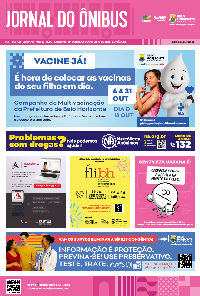 O Jornal do Ônibus é um canal oficial de informação voltado aos usuários do transporte coletivo de Belo Horizonte. Com edições quinzenais, ele está presente em todos os ônibus da capital, contribuindo para aproximar a população dos serviços, campanhas e ações de interesse público.